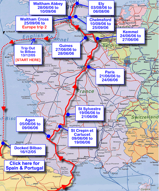 Here is an interactive map of the route we have taken. Click on a label to be taken to a summary page and photos of the area. There are two sections, Europe trip one (December 2005 to October 2006) and Europe trip two (the one we are currently on). Europe